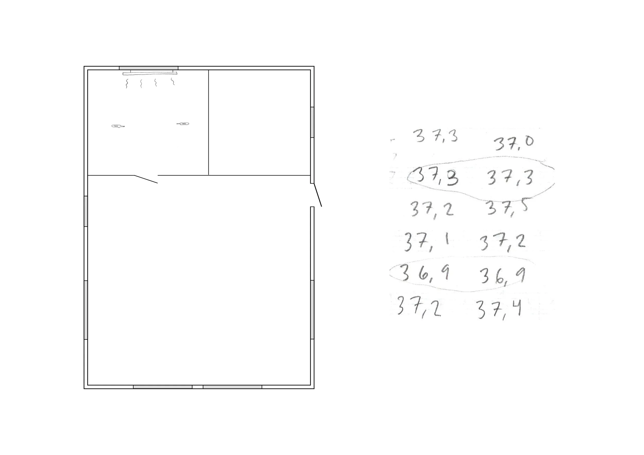 We spent six days at the weather station. The windows of the cabin were covered with an orange filter to exclude all external blue light. Various measurements recorded conditions and changes in our bodies in a shielded environment. Time was spent performing and collecting these results and adding them to a report. What is the weather like in here, inside the walls and skins? Our weather report accounts for a period of isolation